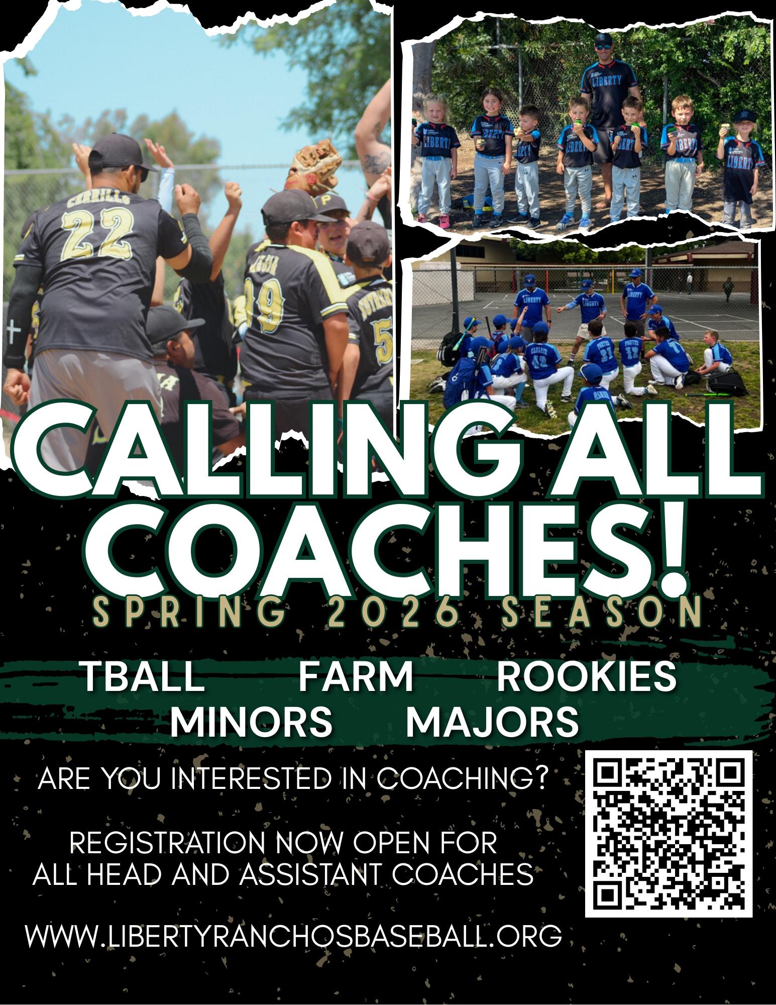 Interested in coaching but not sure where to start? We're here to help! Reach out to David White at coaching@libertyranchosbaseball.org